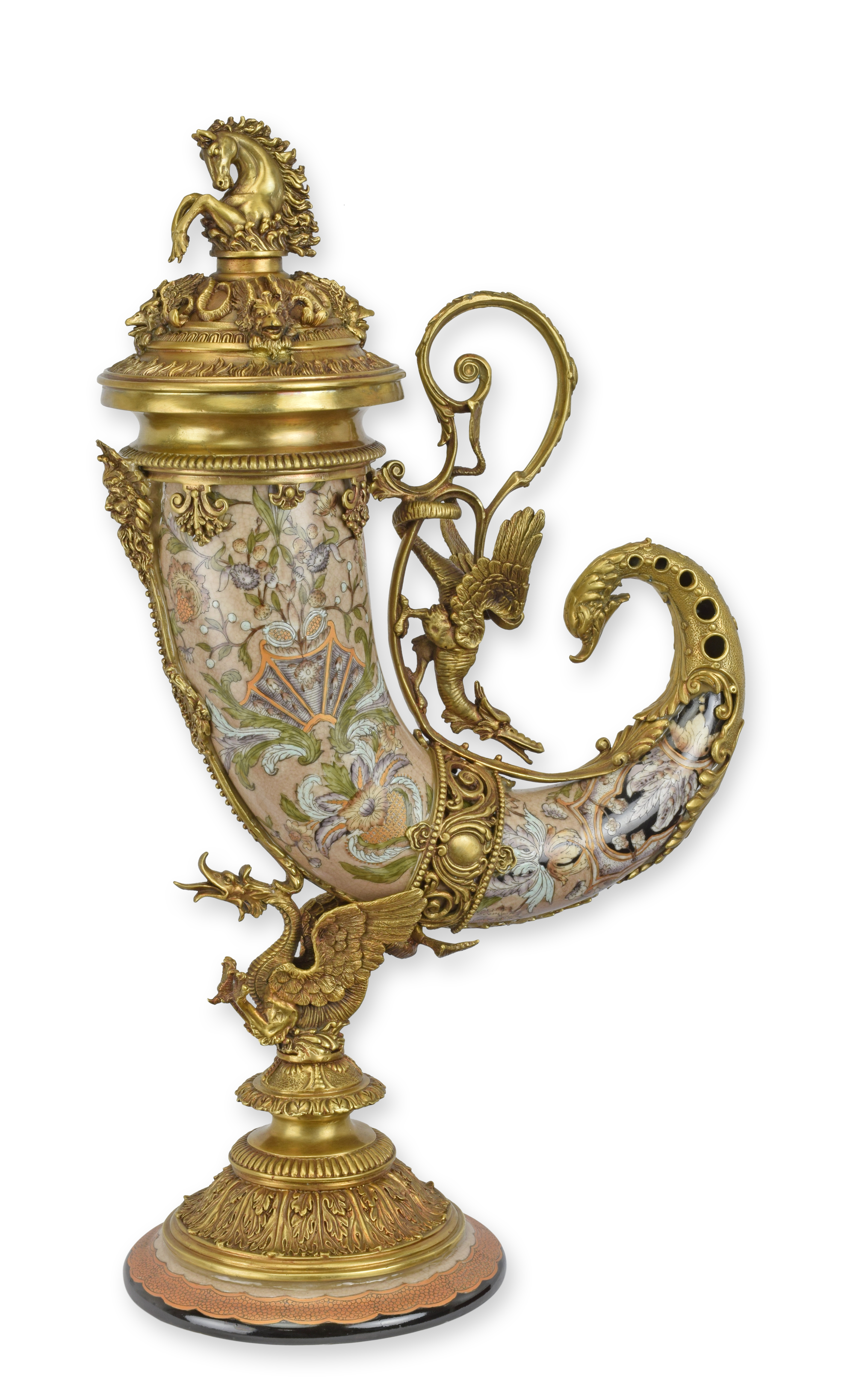 Ett bronsmonterat porslinshorn replik retro design dekoration